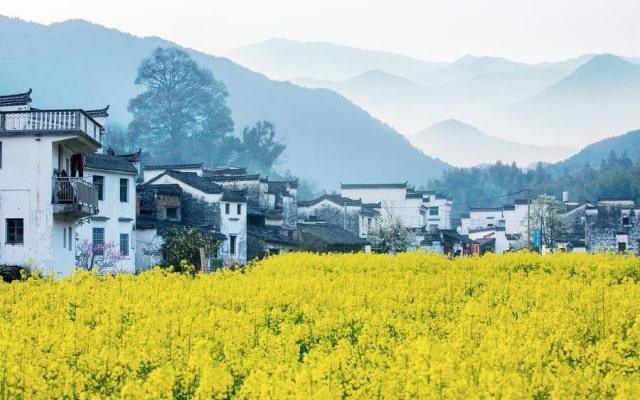 Ngắm hoa cải vàng nở rộ vào mùa xuân sẽ là một trải nghiệm đặc biệt khi du lịch làng cổ Vụ Nguyên, Trung Quốc. Vào khoảng tháng 3 và 4, cánh đồng hoa cải vàng bạt ngàn phủ khắp ngôi làng cổ này, tạo nên bức tranh thiên nhiên tuyệt đẹp và rực rỡ. Màu vàng óng ánh của hoa cải hòa quyện với kiến trúc cổ kính của những ngôi nhà từ thời Minh – Thanh đã tạo nên một khung cảnh thơ mộng hệt như trong truyện cổ tích.
